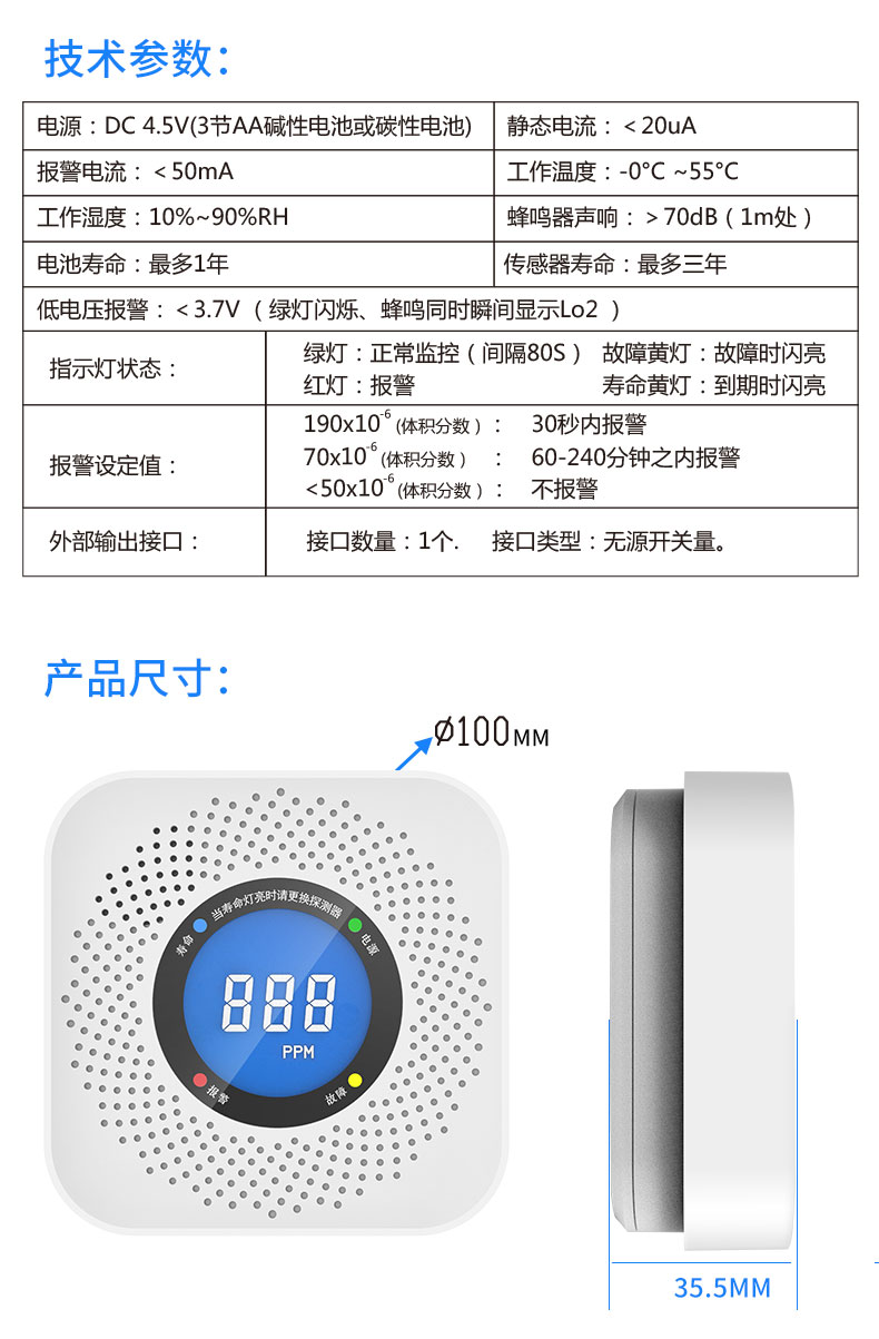 新产品类别别:一阳极氧化碳报警装置器 公布时间间隔:2025-12-29 设备尺寸:PA-008 网页浏览两次:91
